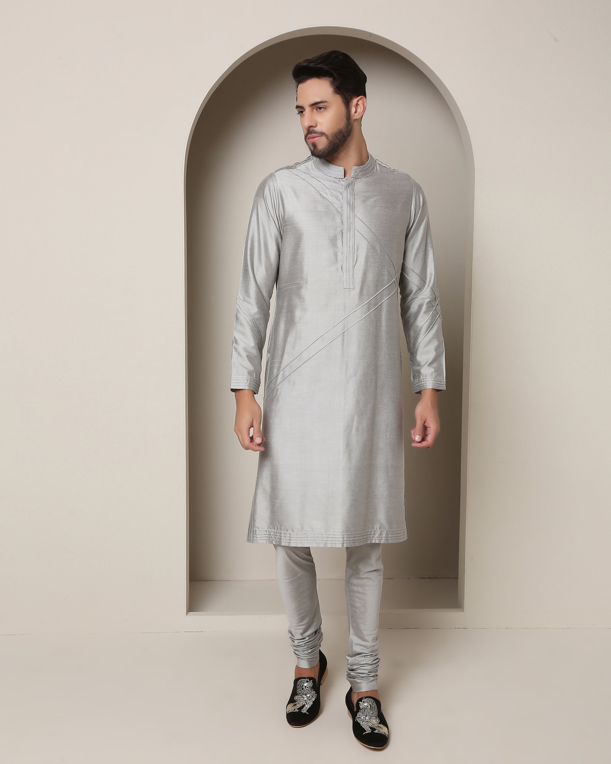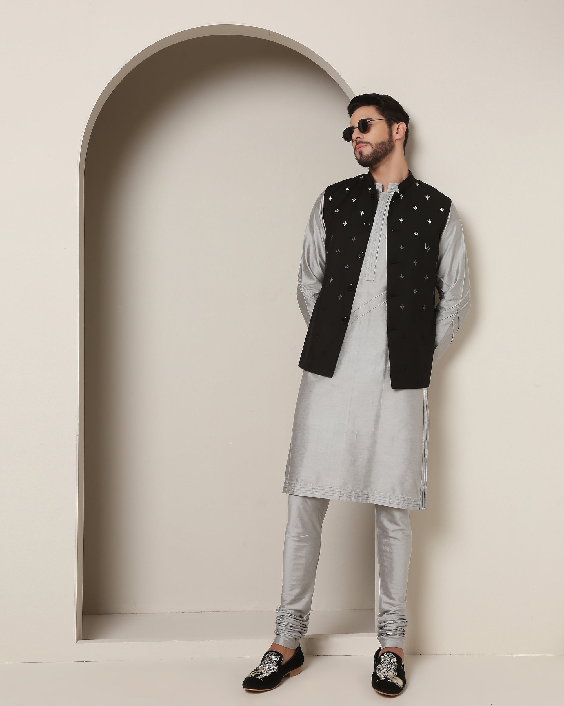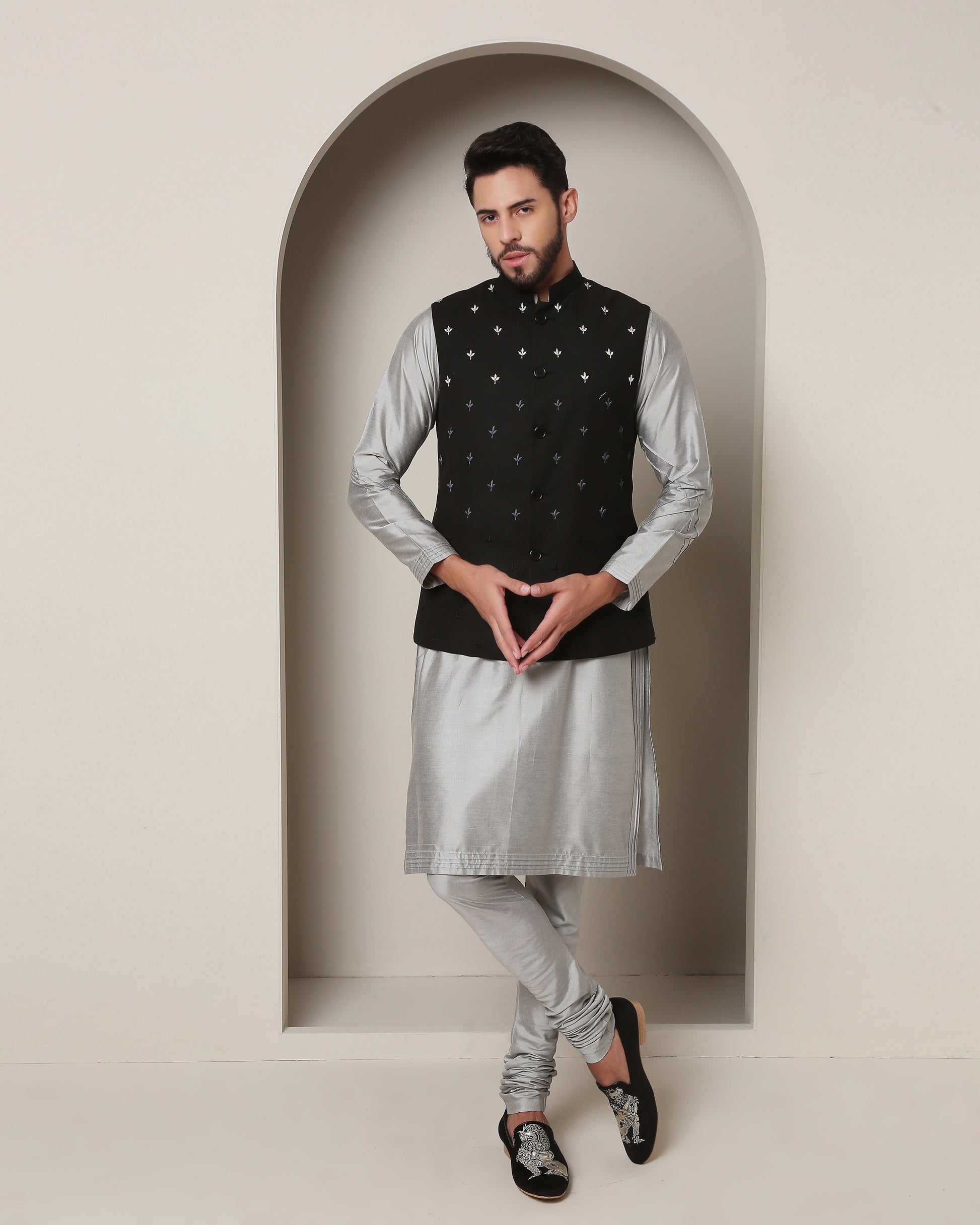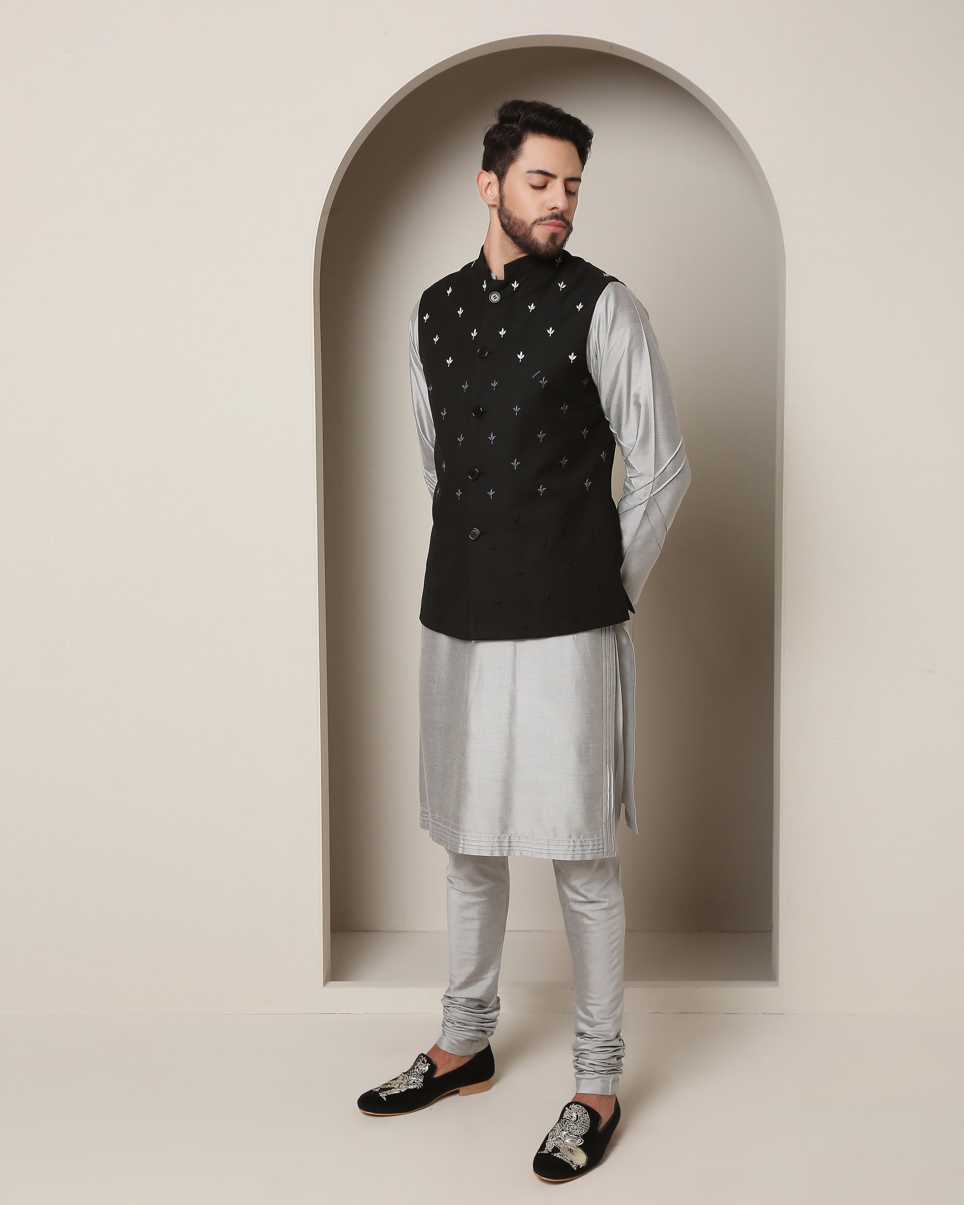 Gradiant Jacket and Grey-Silver Kurta Symphony