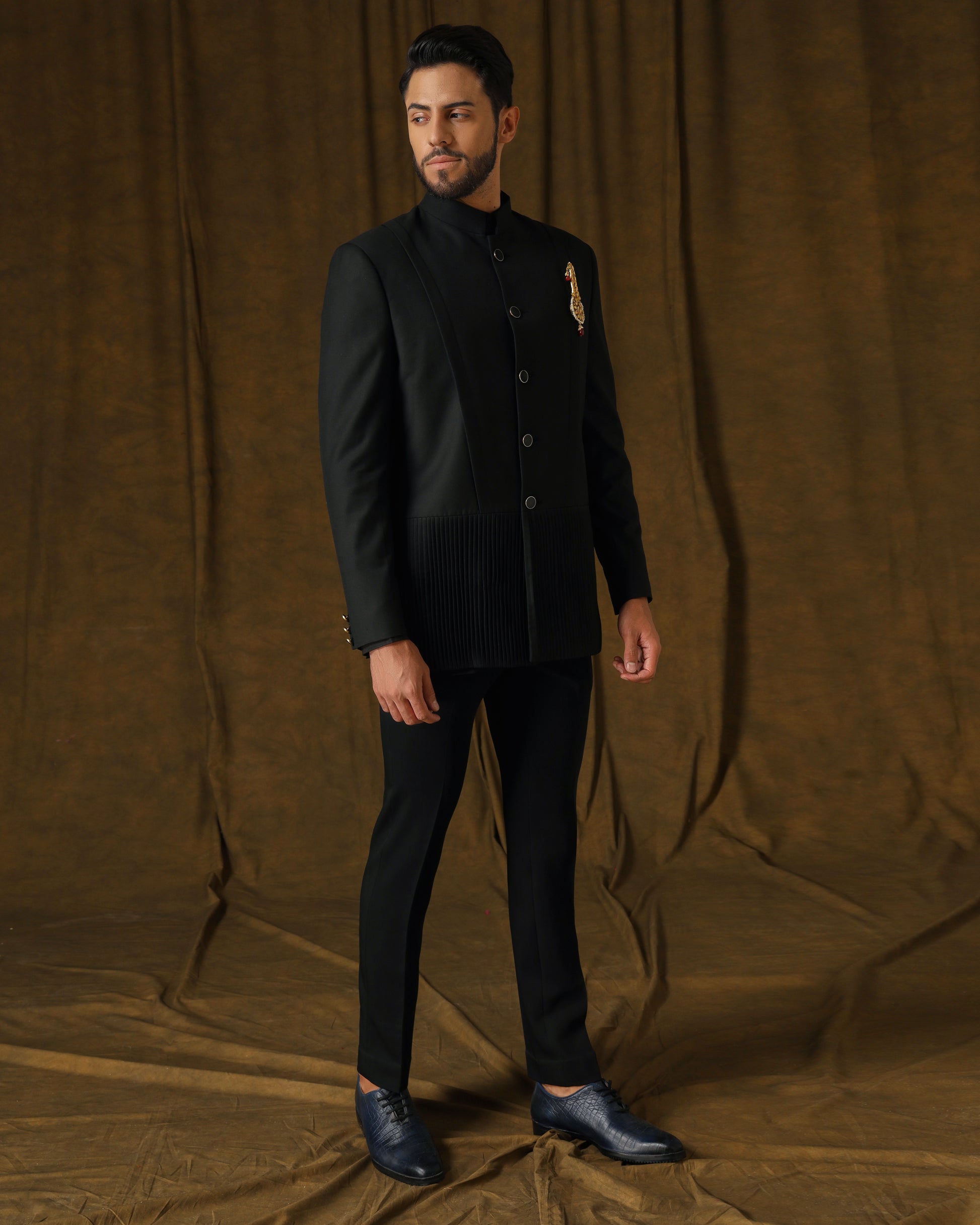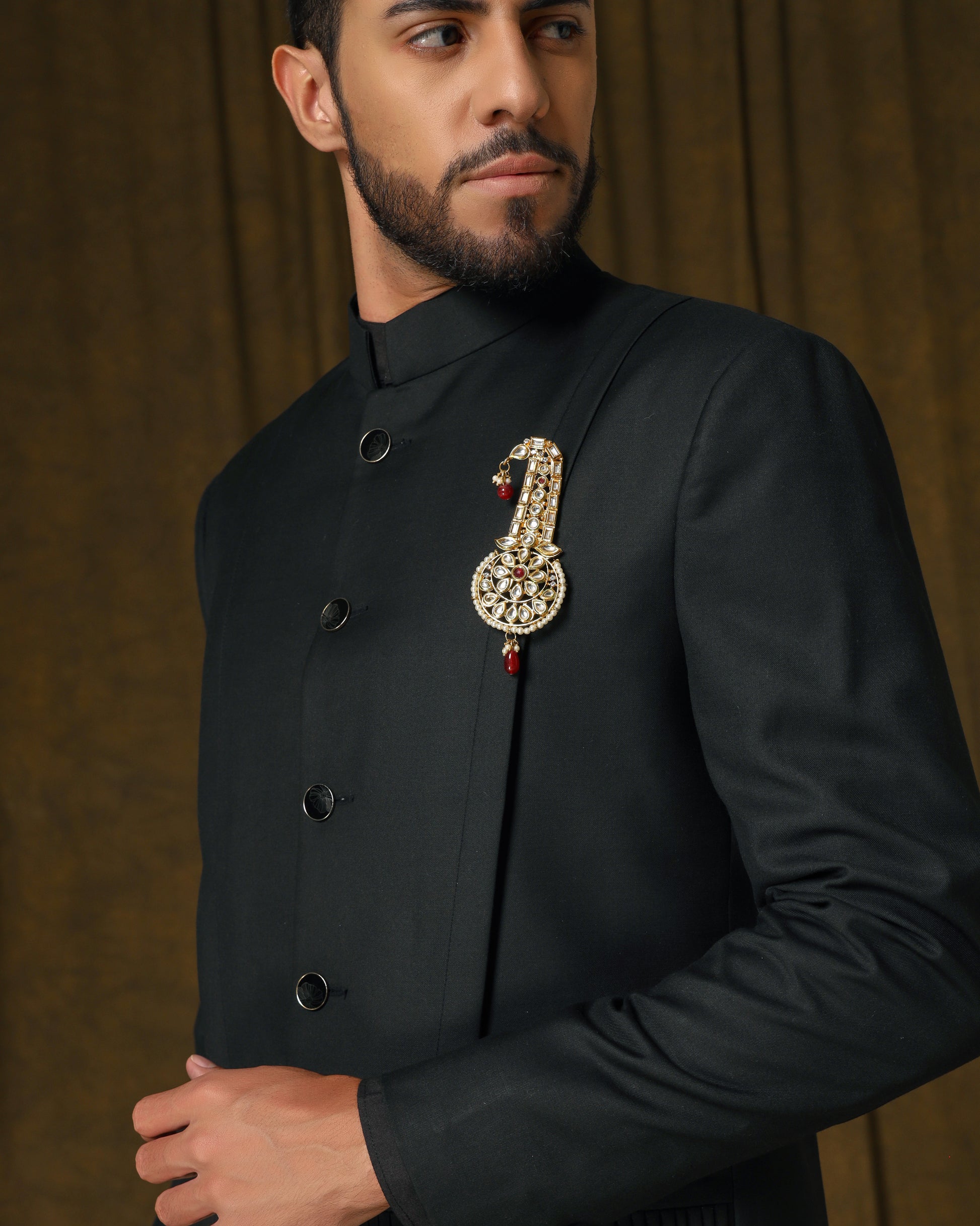 Elegant black bandhgala, refined details