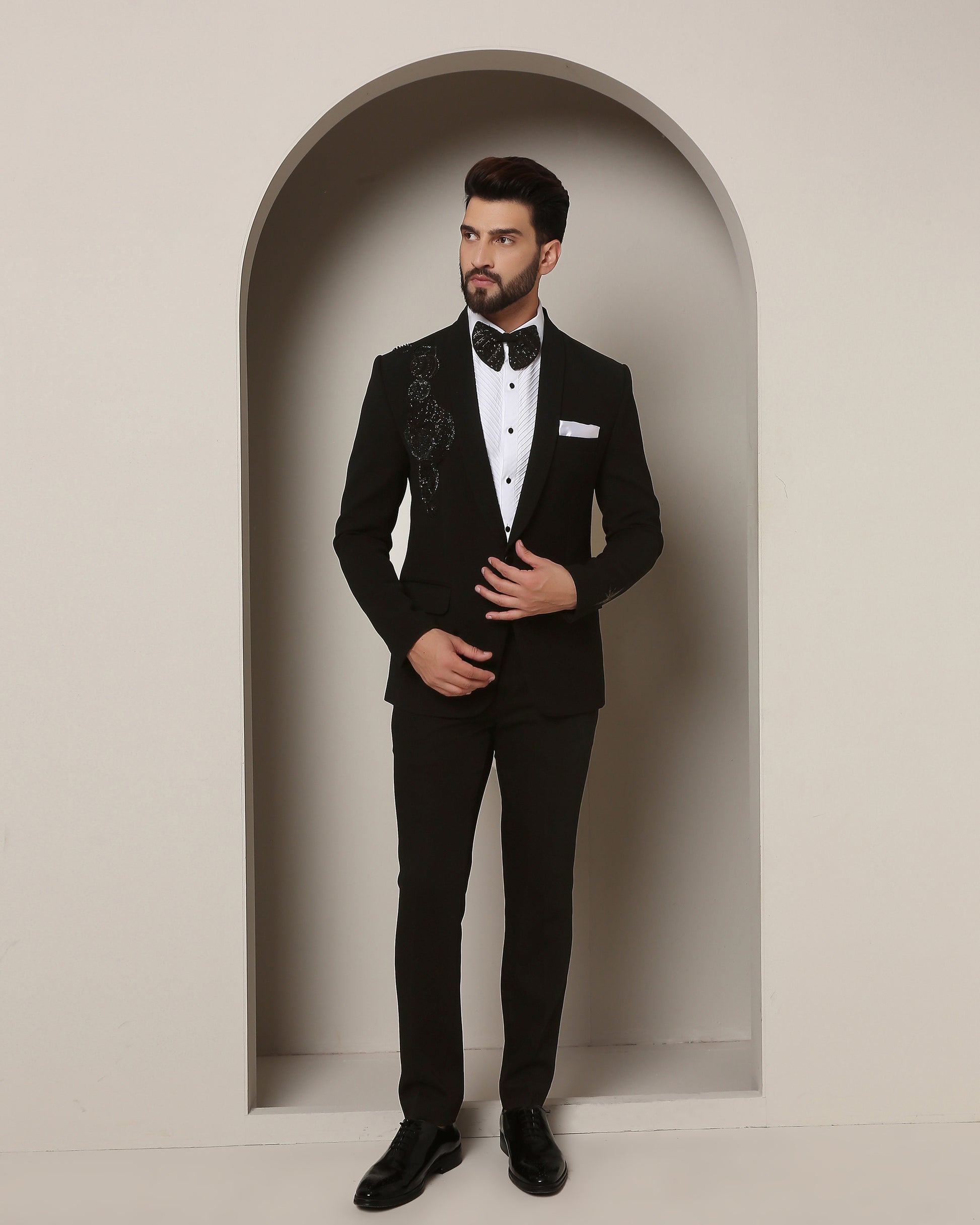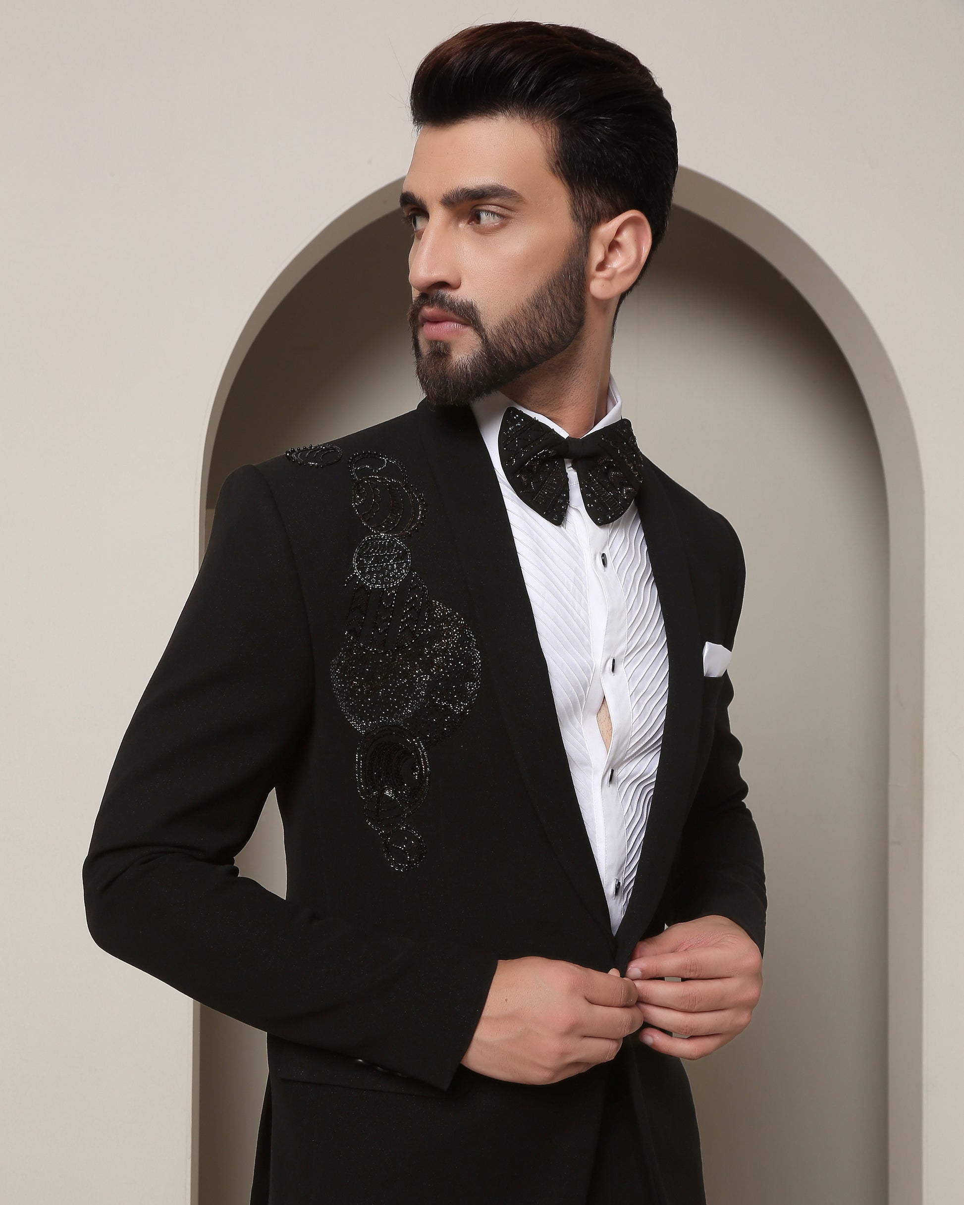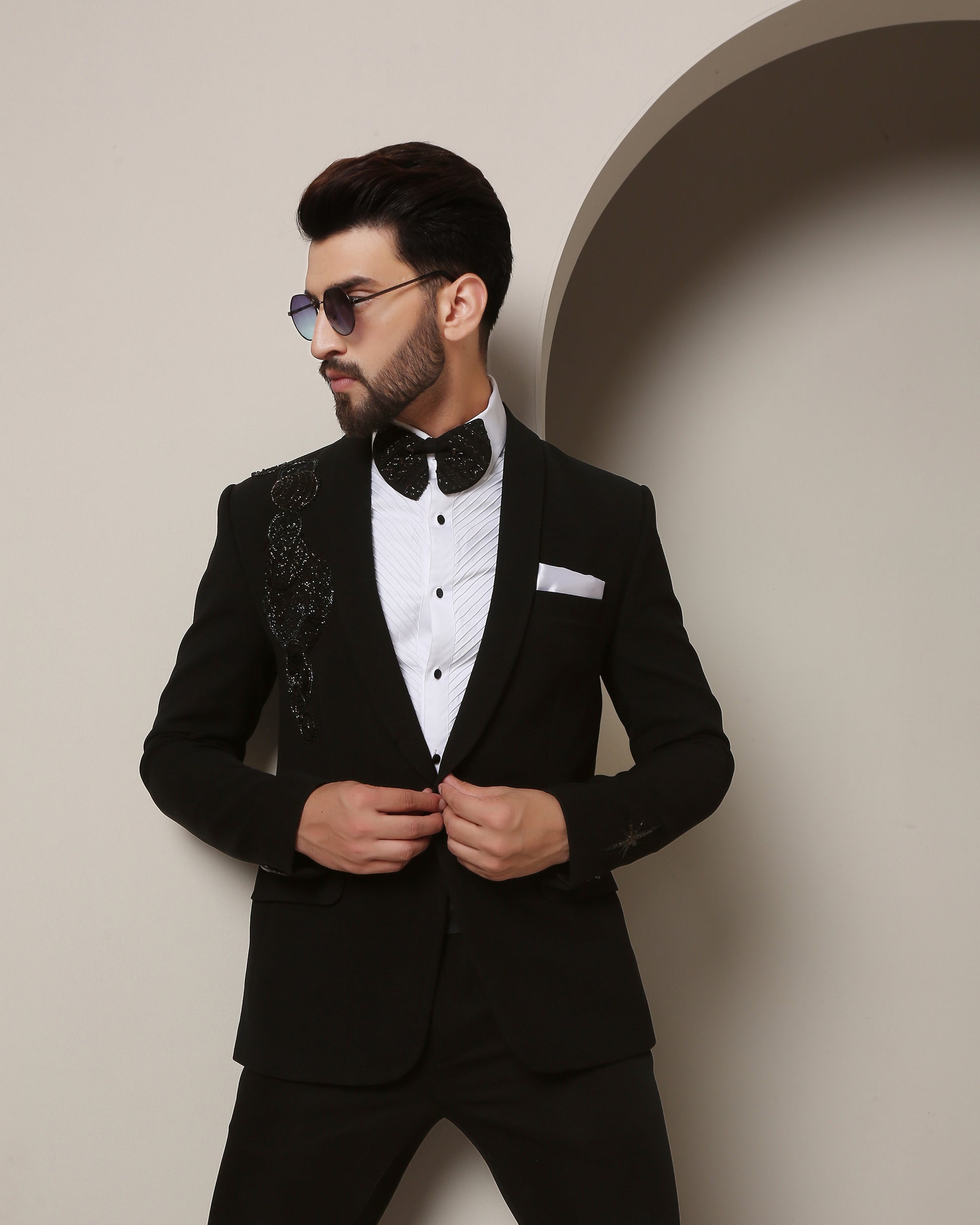This exclusive tuxedo, with its sleek shawl lapel, is meticulously designed to captivate attention and spark curiosity. Let's delve into the enchanting details that make this tuxedo an embodiment of cosmic wonder.
