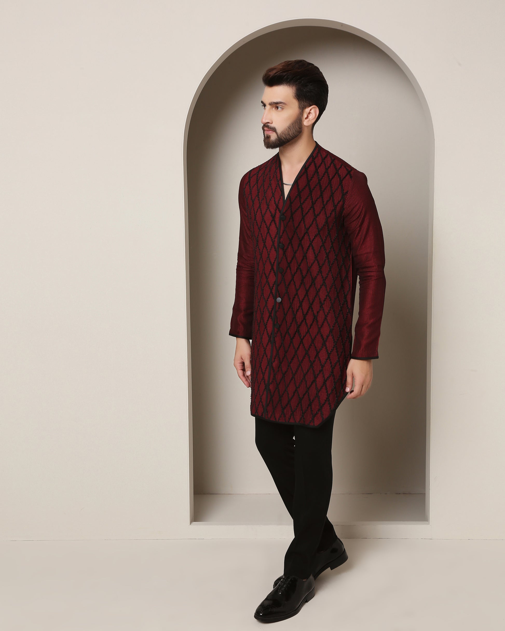 Maroon Pintuck Diamond Kurta